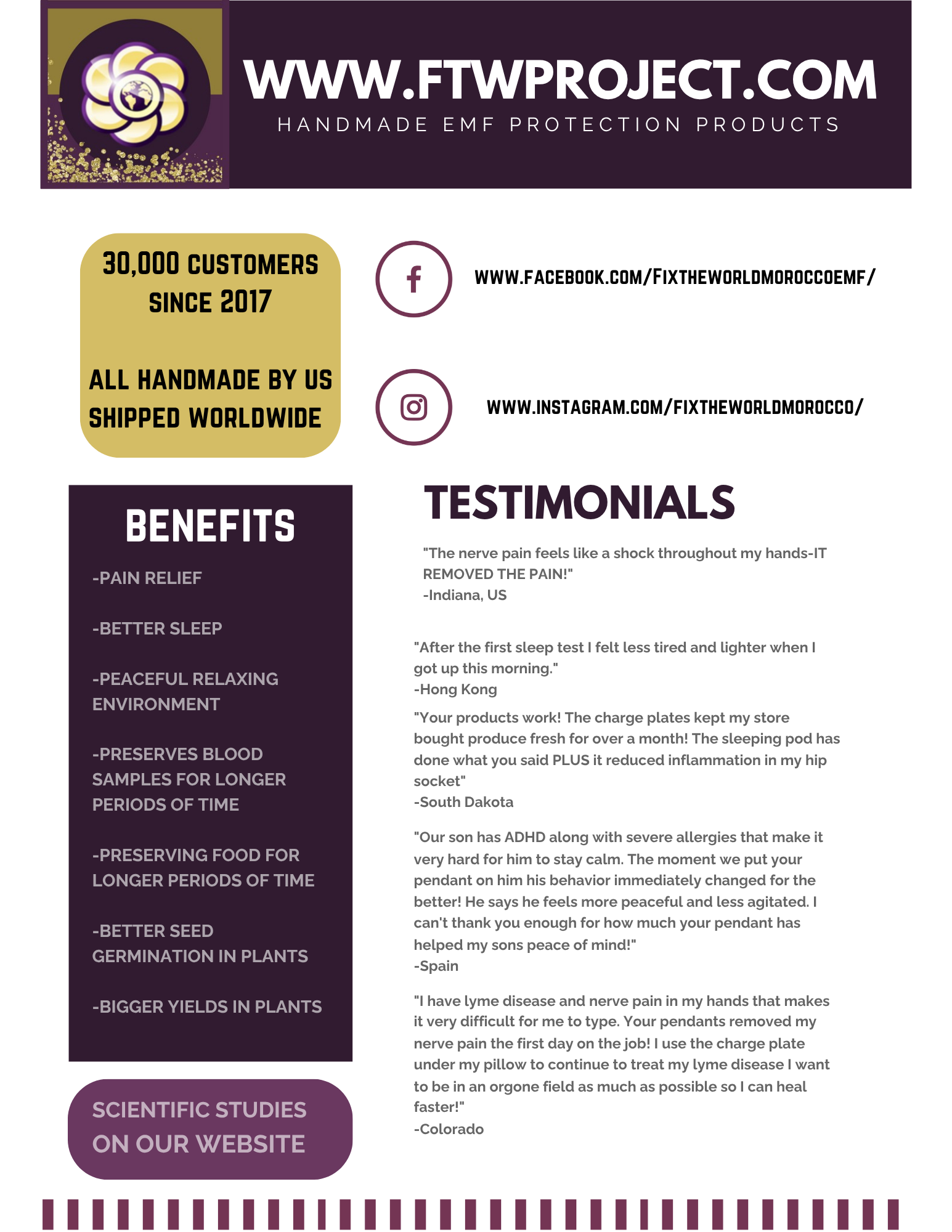 FTW Orgone Energy Product Information Science and Testing Guide DOWNLOAD OUR PRODUCT INFORMATION GUIDE AS A PDF CLICK HERE: FTW Product Information Booklet